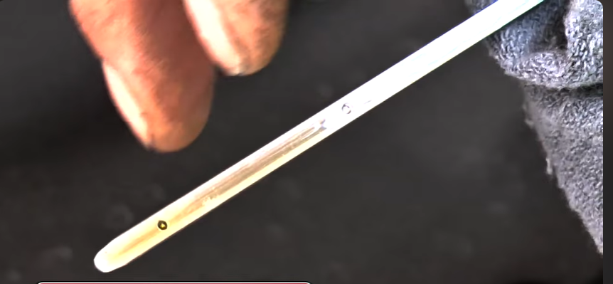Then, pull out the dipstick and wipe it clean with your paper towel or cloth. Next, reinsert the dipstick all the way and then pull it out again. Finally, hold the flashlight up to the end of the dipstick and check where the oil level falls in relation to the “full” line – this will give you your current oil percentage.